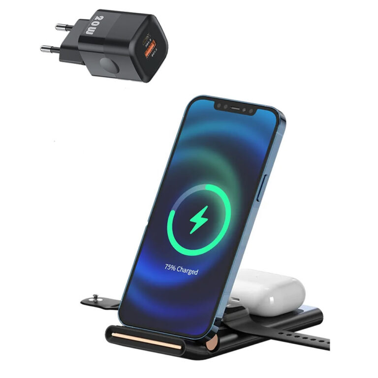 Cargador Inalámbrico para iPhone 13 12 11 XR XS 8, Estación de Carga 3 en 1 iPhone, Apple Watch y AirPods