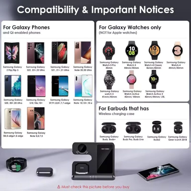 Cargador Inalámbrico Rápido 15w para Samsung Galaxy S y Z Flip/ Buds / Watch