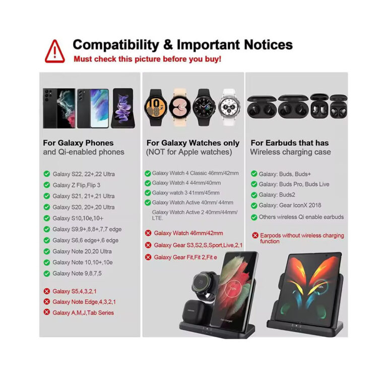 Cargador Inalámbrico Rápido 15w 3 en 1 para Samsung Galaxy, Buds y Galaxy Watch