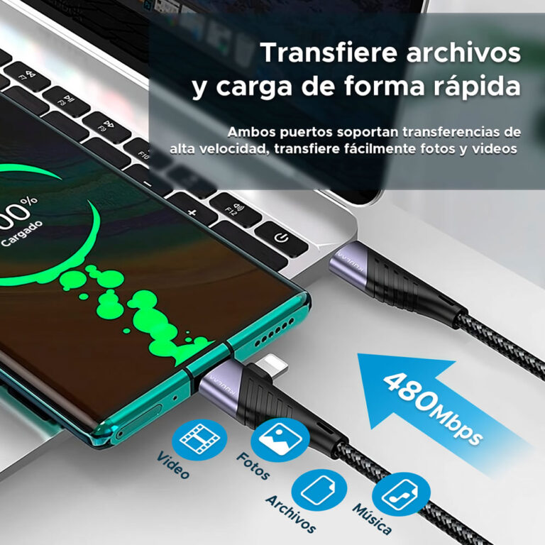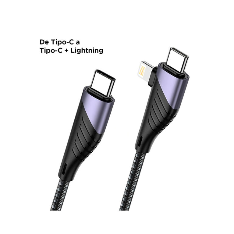 Cable Tipo C a C y Lightning en ángulo Carga Rápida 65w trenzado en Nylon