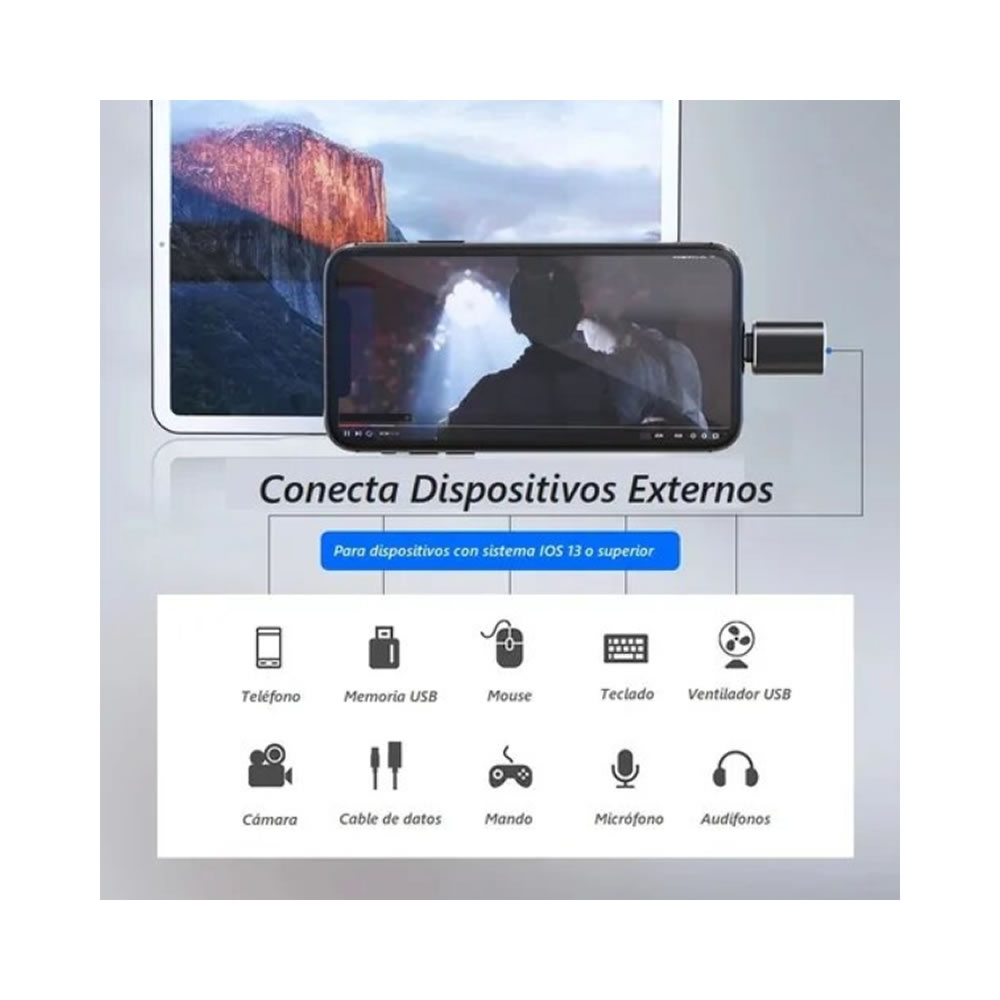 Soporta función OTG, es decir, funciona hacia ambos lados; datos y carga