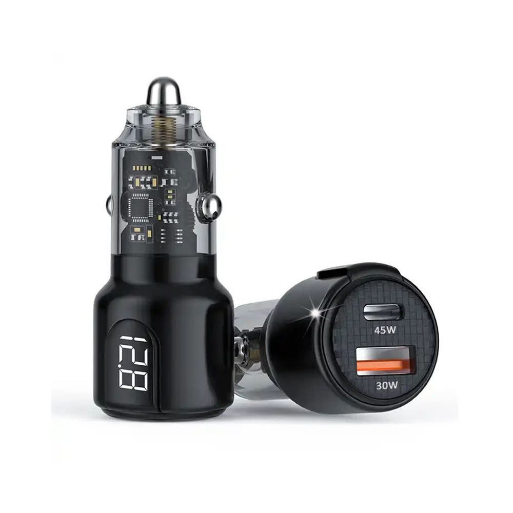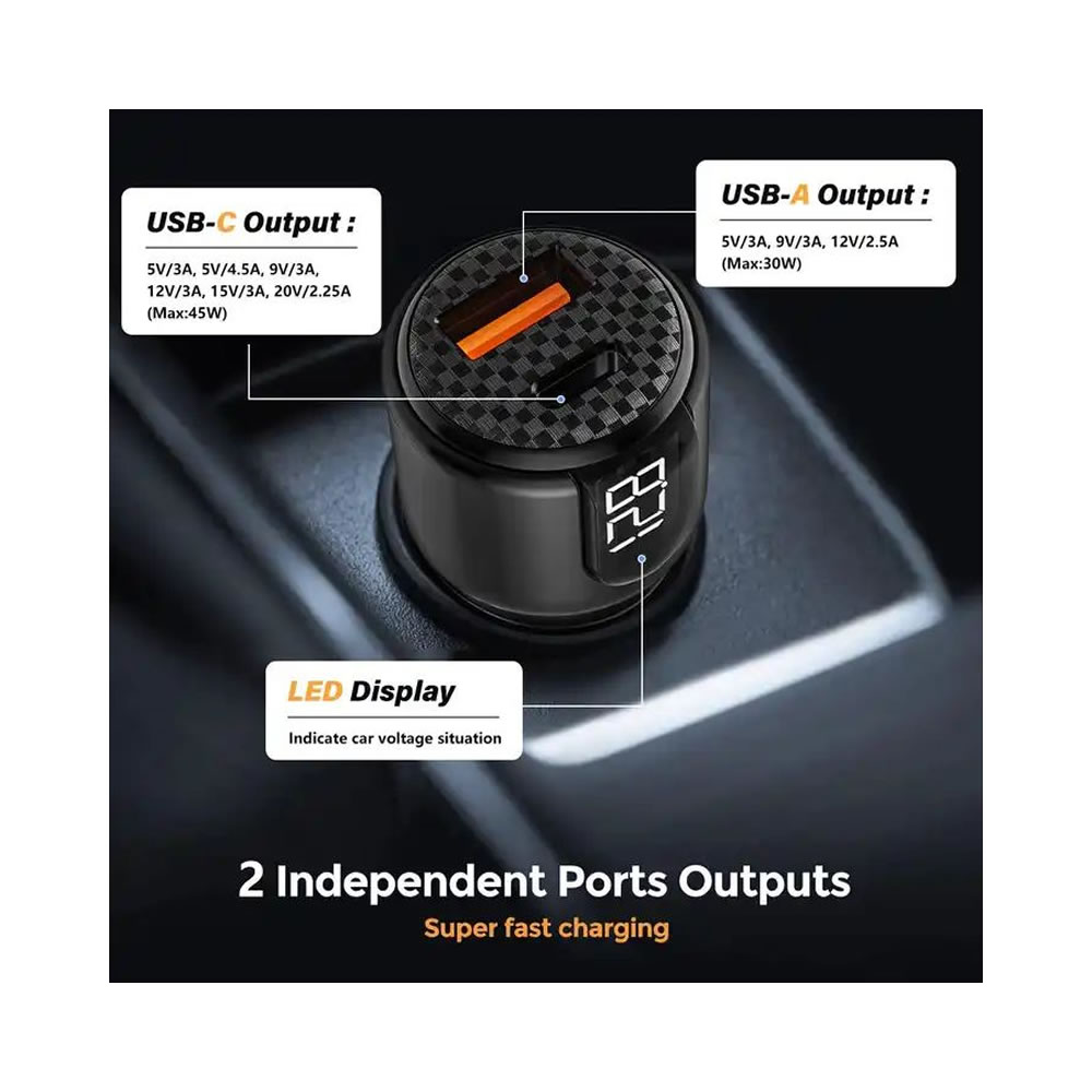 Cargador para auto con salida máxima en Tipo C de 45 watt y soporta múltiples protocolos de carga rápida, puede proporcionar Pawer Delivery PD.