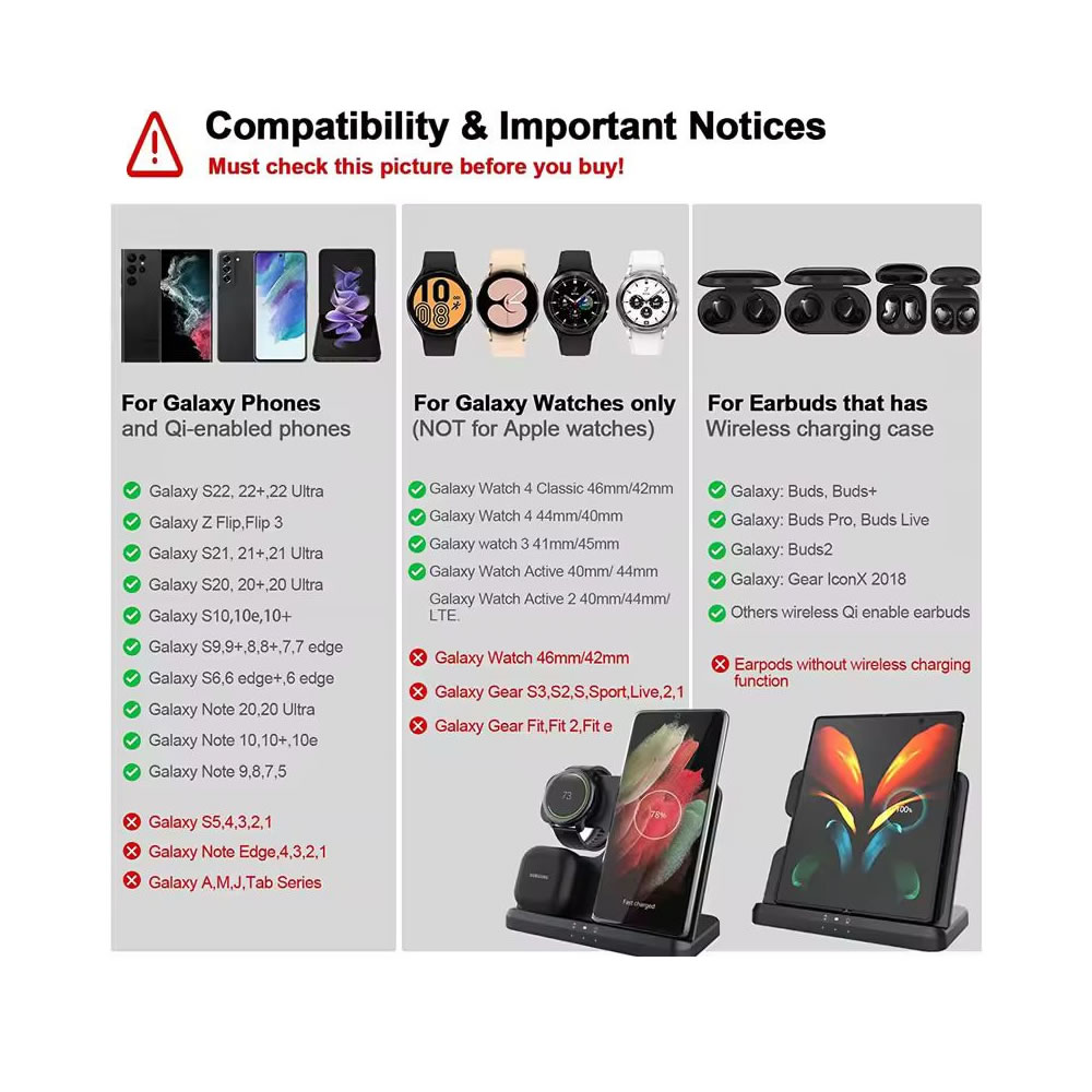 Con esta nueva Estación de carga 3 en 1 Multifuncional podrás cargar todos tus dispositivos Samsung de una sola vez.