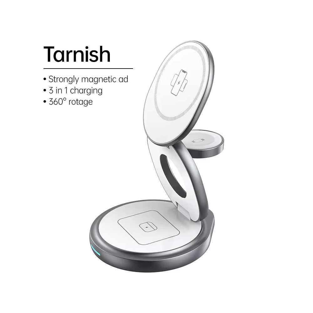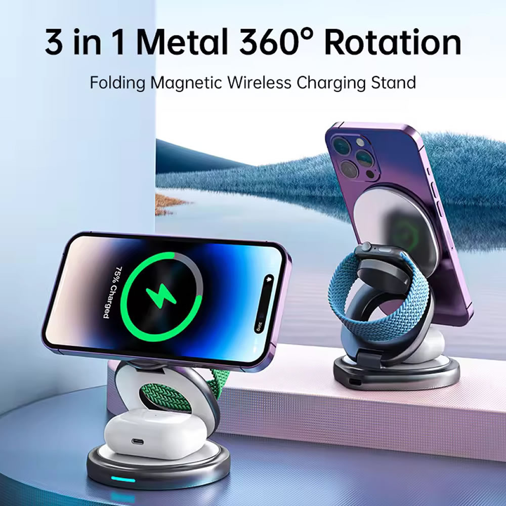 Cargador Inalámbrico MagSafe diseñado en Aluminio, 3 en 1 ultradelgado Carga Rápida de 15 watt